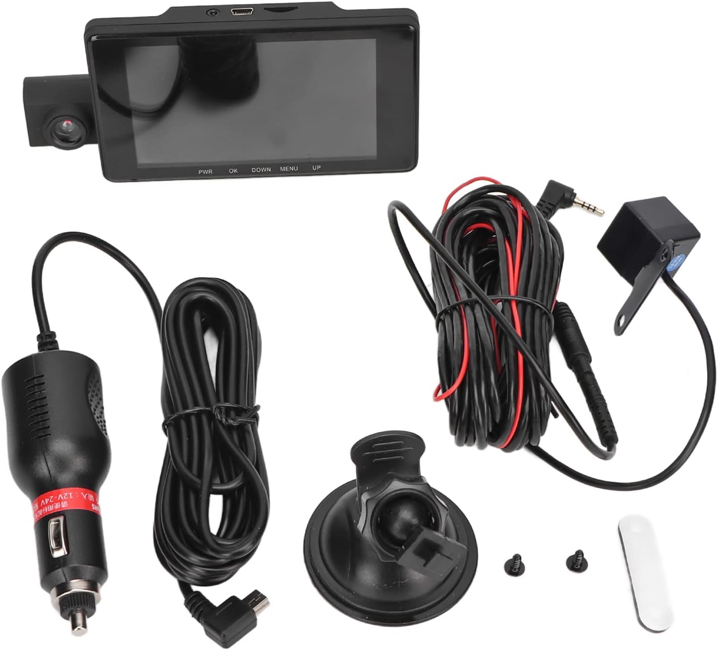 - Soporte y accesorios de montaje para instalar la cámara en el tablero del coche de forma segura.